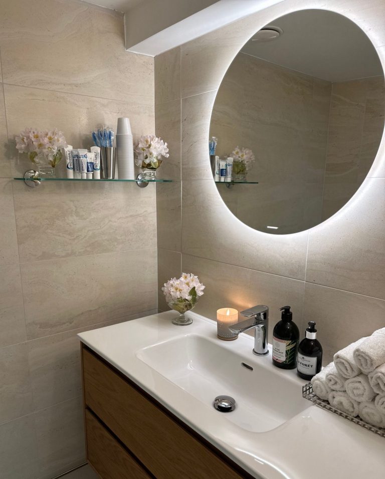 Badrum i japandi stil med spakänsla